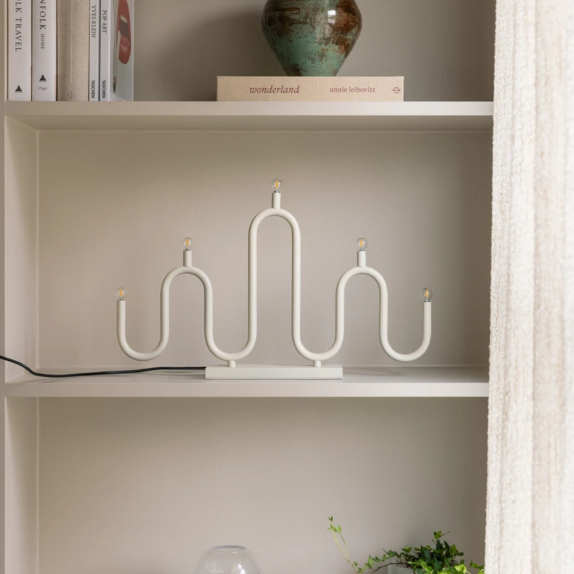 Lámpara de mesa Noel: diseño escandinavo con la forma clásica de un candelabro de Adviento