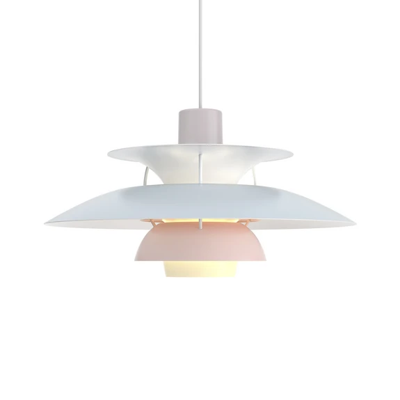 La PH 5 fue desarrollada por Poul Henningsen (PH) en 1958. La PH 5 se presentó como una novedad, y nadie podía saber entonces que la PH 5 acabaría convirtiéndose en sinónimo de la Lámpara PH. Independientemente de cómo se instale la lámpara y de la fuente de luz que se utilice, la PH 5 no deslumbra en absoluto. La luminaria recibió el nombre de PH 5 por el diámetro de 50 cm de la pantalla principal. Poul Henningsen quería mejorar las propiedades de reproducción cromática de la fuente de luz de la PH 5. Por ello, se añadieron pequeñas pantallas rojas y azules para proporcionar un suplemento de color en la parte del espectro donde el ojo es menos sensible -el rojo y el azul- y debilitar así la luz en la zona central -el amarillo-verde-, donde el ojo es más sensible. Con motivo del 50 aniversario de PH 5, en 2008 se presentó PH50, una versión en 5 nuevos colores de alto brillo.