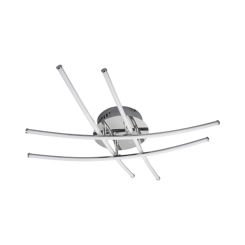 La lámpara de techo Yeal Chrome / White es una fuente de iluminación decorativa pero efectiva con una apariencia moderna que se destaca de inmediato. El diseño no convencional se compone de cuatro rieles curvos que se cruzan en el medio en un patrón #. Los rieles tienen una cubierta blanca con una fuente de luz detrás de ellos en forma de LED de bajo consumo. Cuando se enciende la lámpara, brillan a través de las cubiertas en un práctico brillo blanco cálido, que al mismo tiempo resalta la forma de la lámpara en un patrón de luz fascinante. La luz se refleja en el marco de metal cromado, por lo que obtienes agradables acentos de luz adicionales.